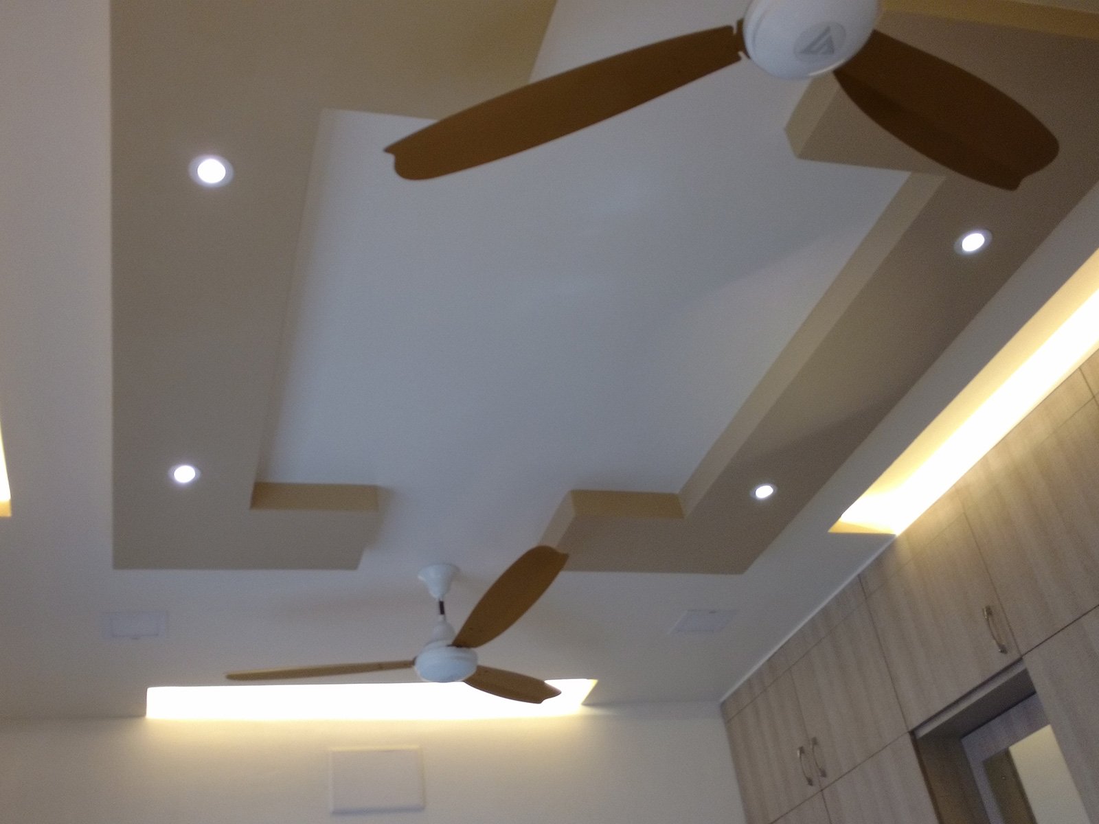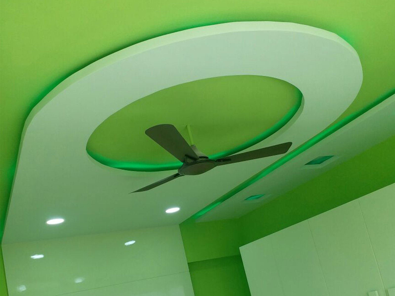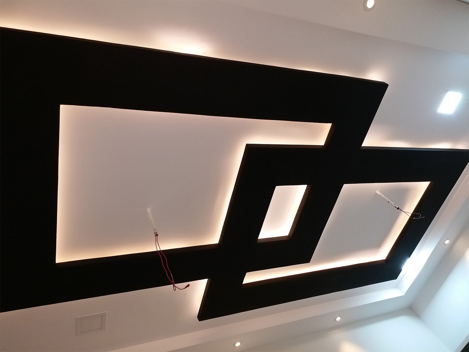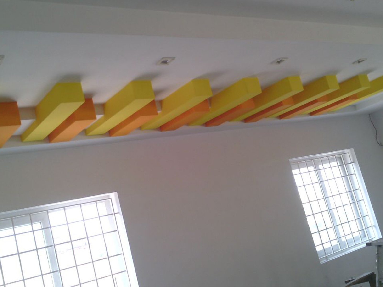 A false ceiling is a fitted ceiling that hangs below the original ceiling of a room or home. It's usually suspended by wooden or metal frames and the illusion it brings of a lower ceiling, sometimes with parts of the original ceiling on display, has earned it the moniker 'dropped ceiling'.
