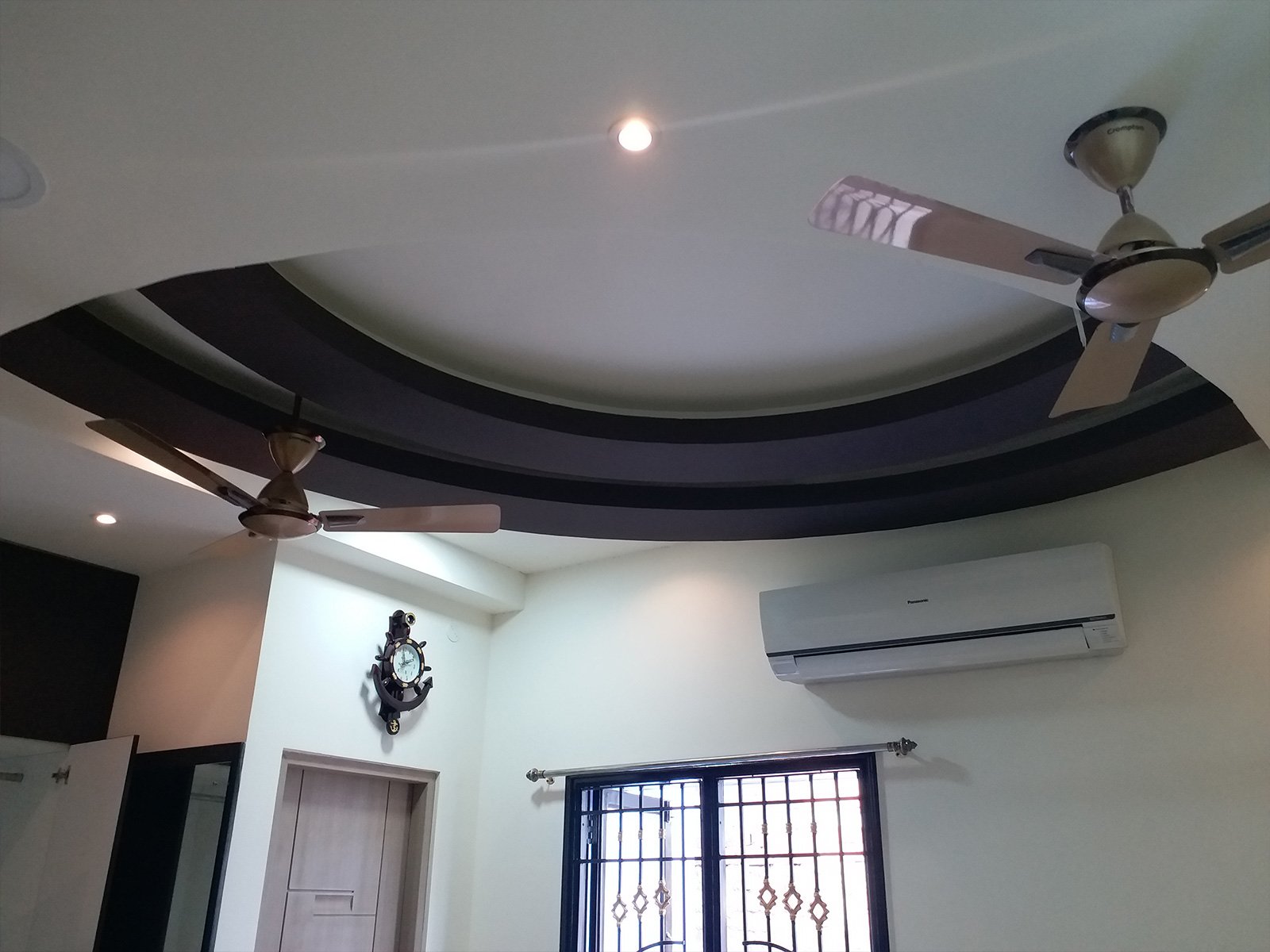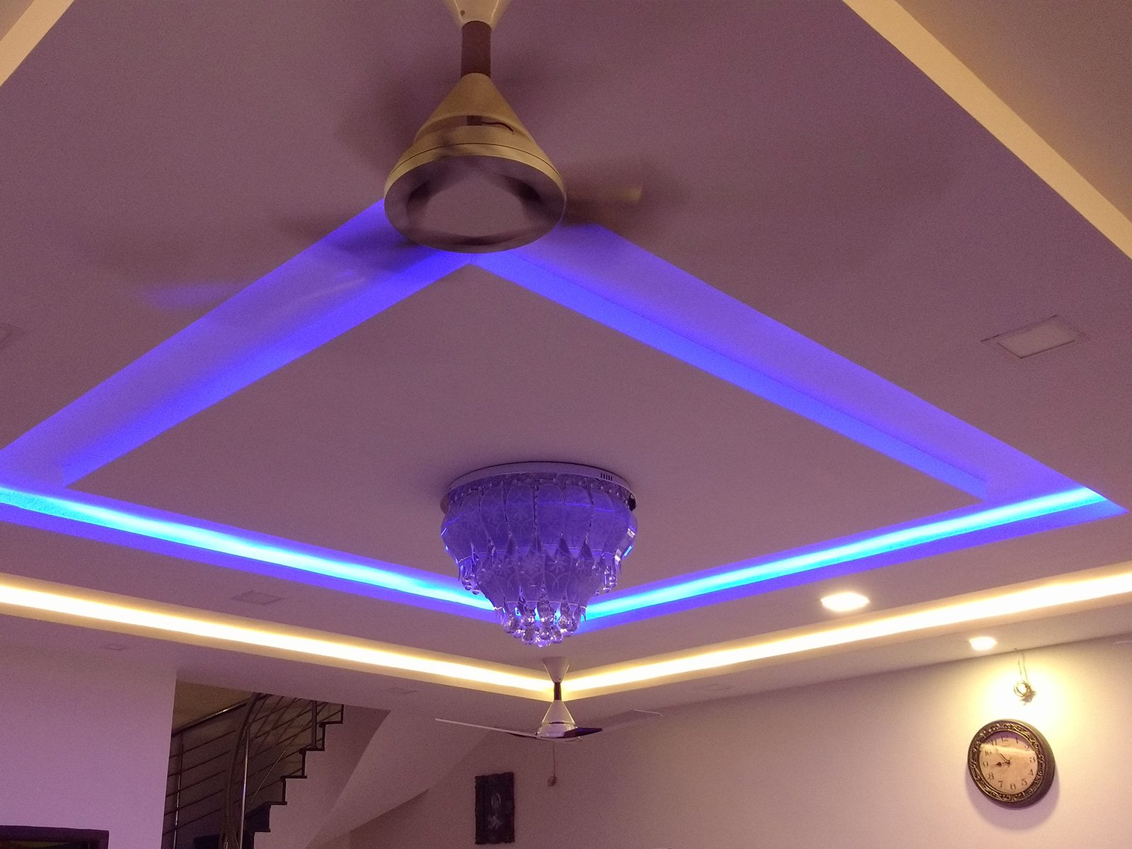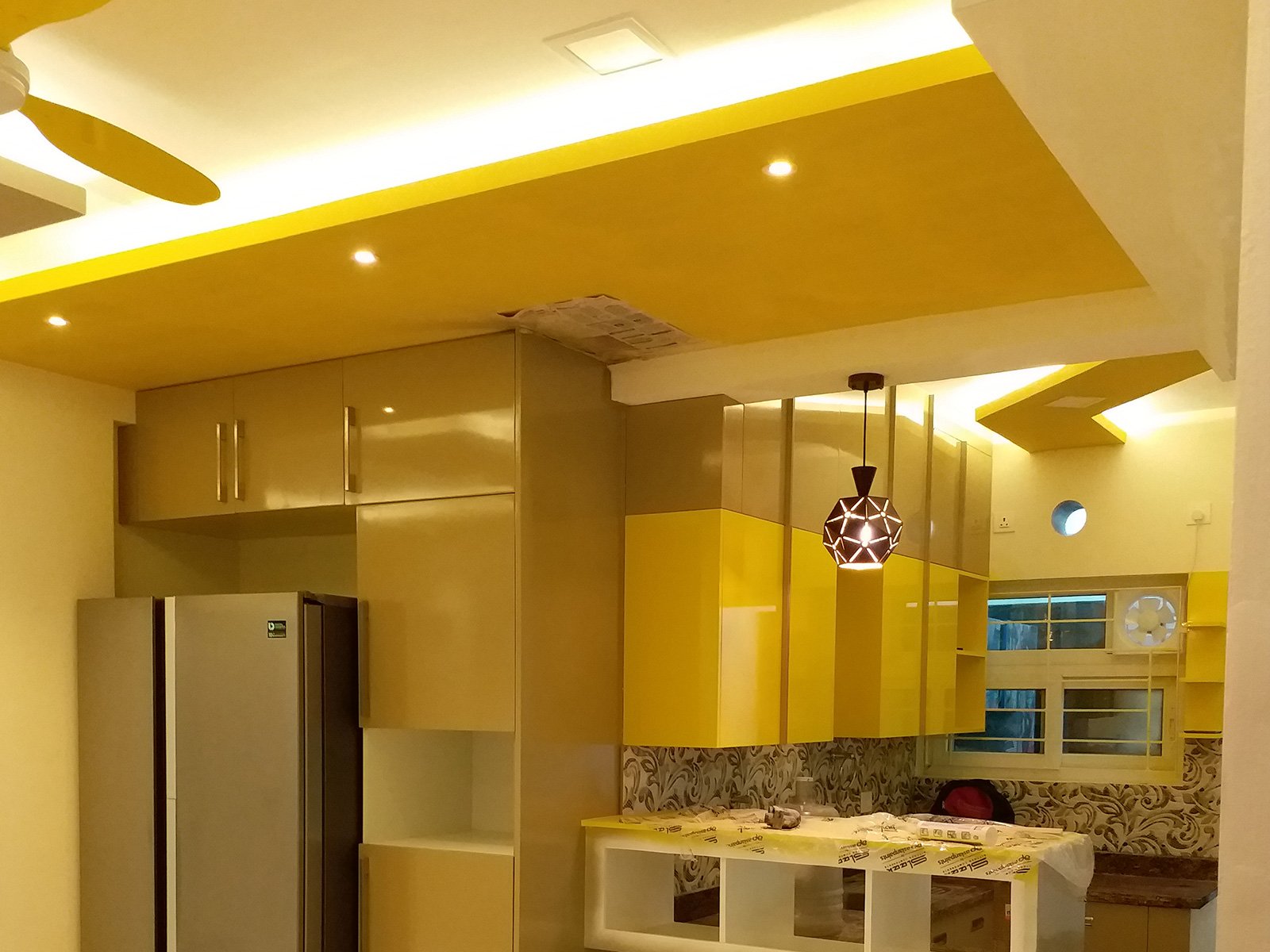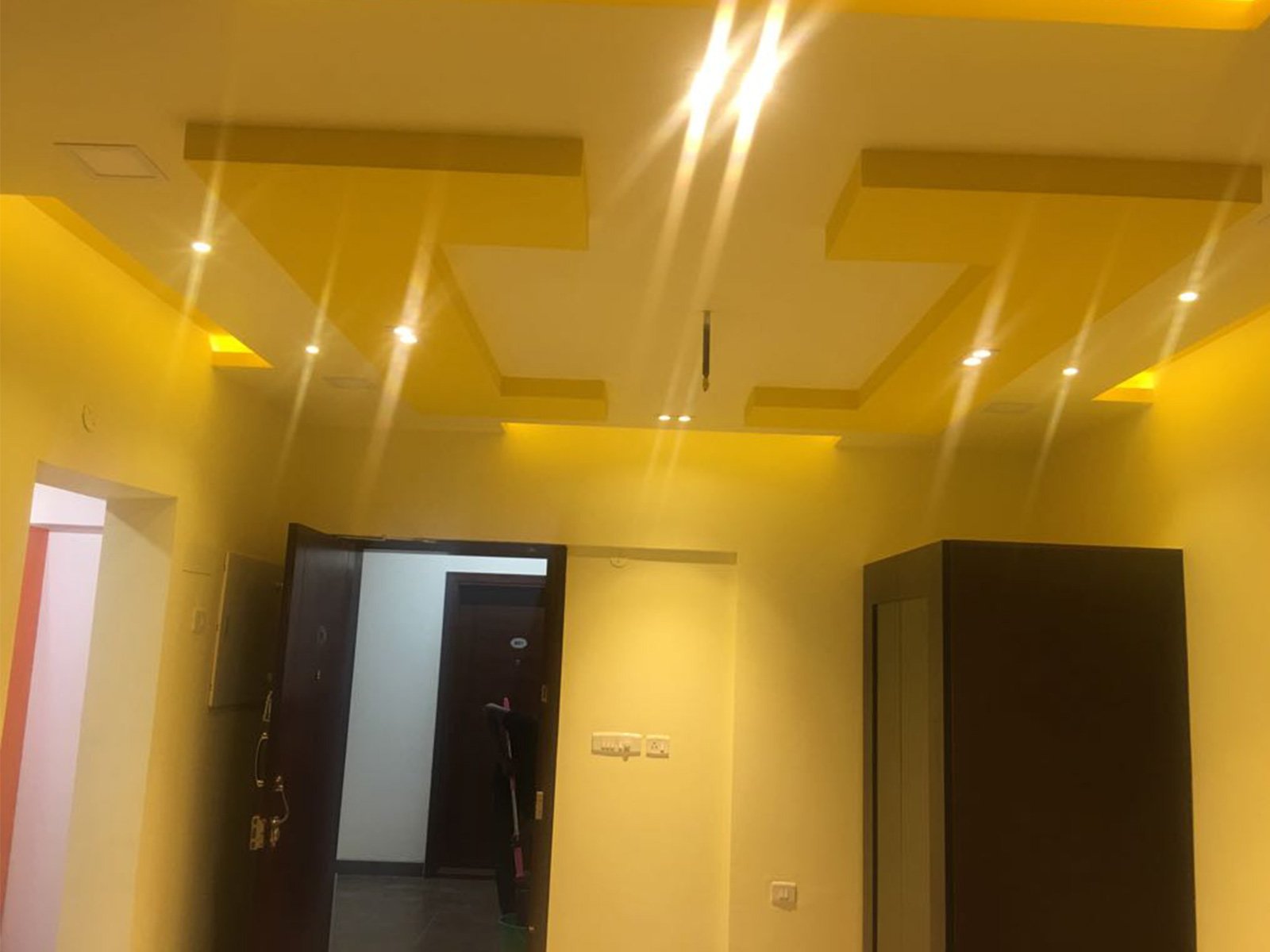 A false ceiling is a fitted ceiling that hangs below the original ceiling of a room or home. It's usually suspended by wooden or metal frames and the illusion it brings of a lower ceiling, sometimes with parts of the original ceiling on display, has earned it the moniker 'dropped ceiling'.