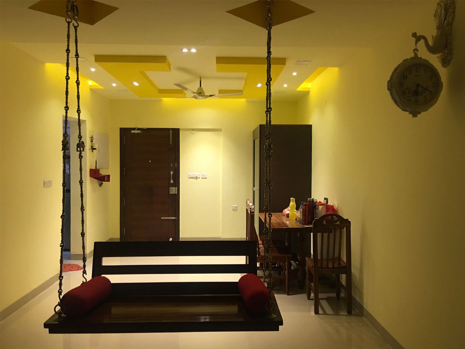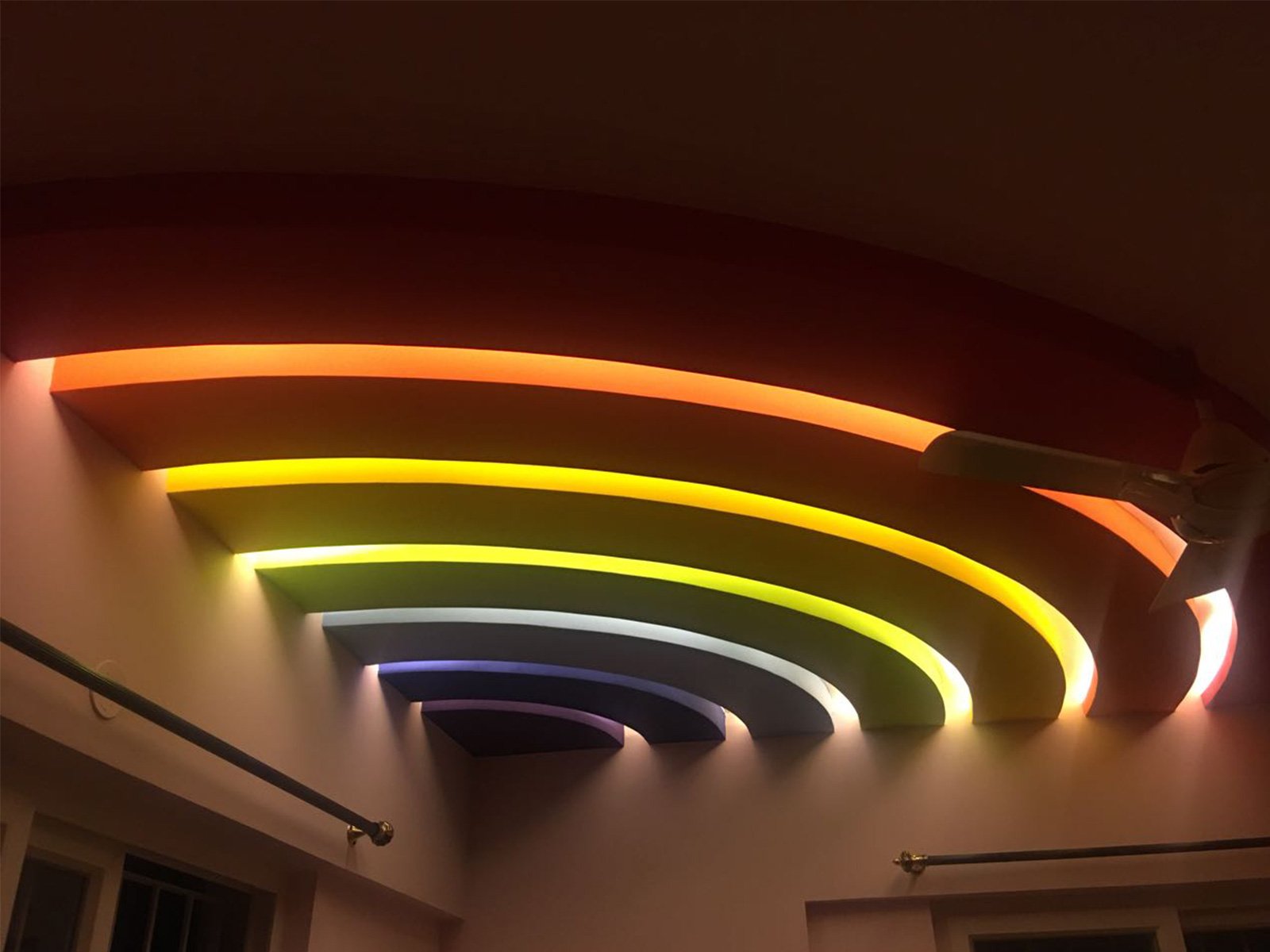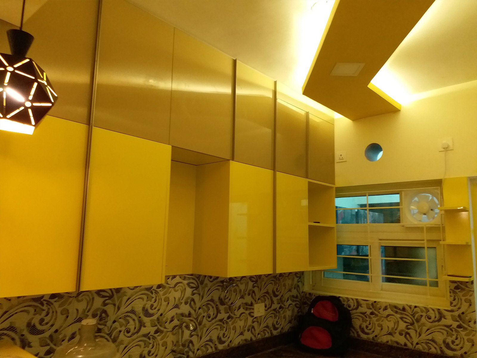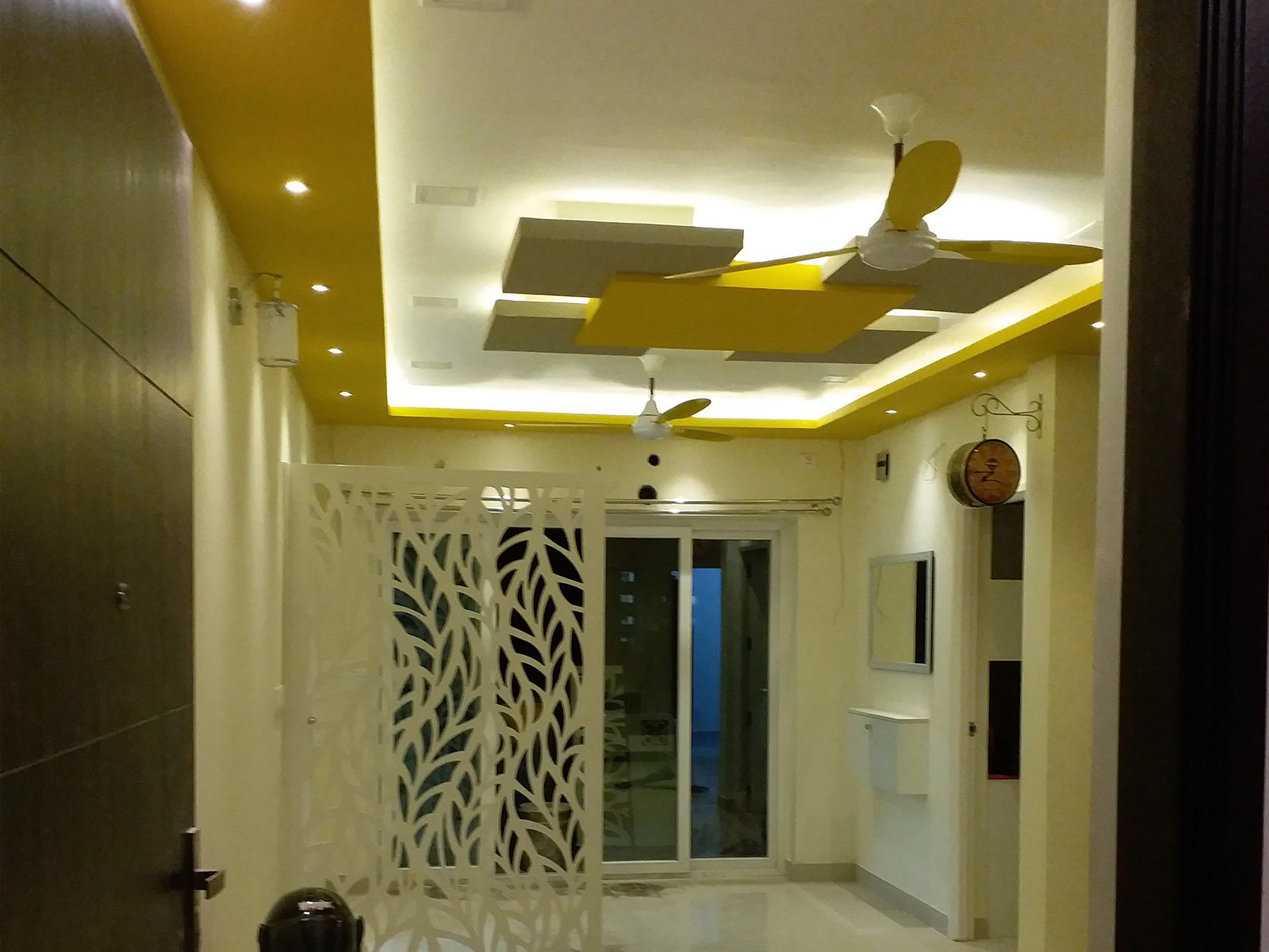 A false ceiling is a fitted ceiling that hangs below the original ceiling of a room or home. It's usually suspended by wooden or metal frames and the illusion it brings of a lower ceiling, sometimes with parts of the original ceiling on display, has earned it the moniker 'dropped ceiling'.